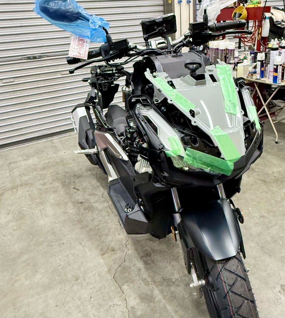 ご売約済みのADV160の新車も外装バラバラで傷つかないように養生テープして