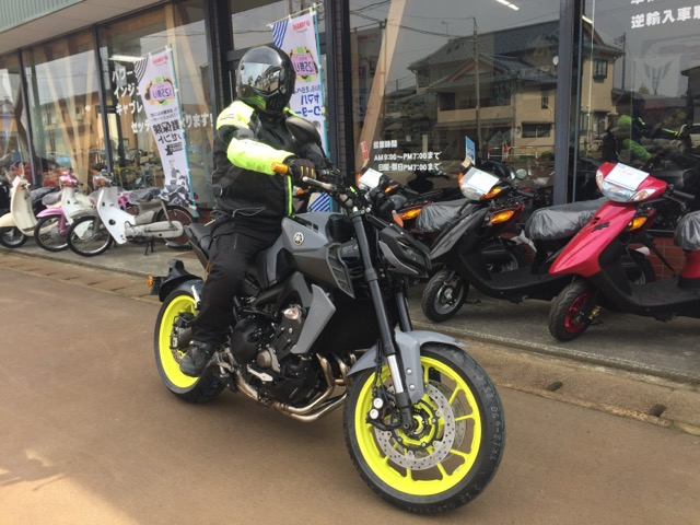 予定より早く入荷したMT-09を引き取りにI様ご来店され、早速出発されて行かれました♪大変有難う御座いました。楽しいゴールデンウィークをお過ごし下さい。