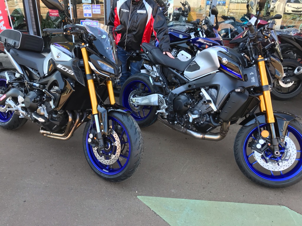 MT-09SPの新旧モデルが並んで♪どっちもカッコいいですね!