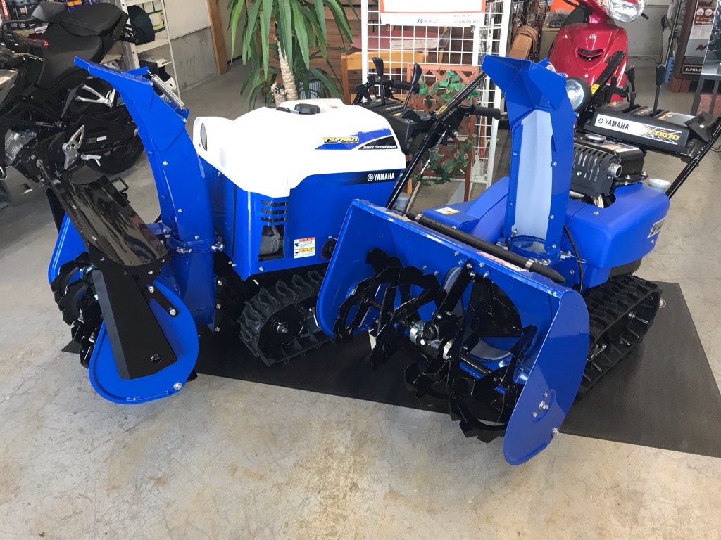 除雪機もご予約の機種が順番に入荷してきて店頭にもヤマハの青い除雪機が並んでおります。