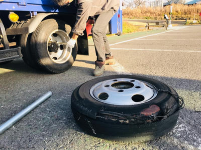 後輪はダブルのタイヤだったから良かったけど、外れたりせずホントに良かった~