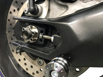 YZF-R25のシャシダイのセッティングに作業は続いていきます。