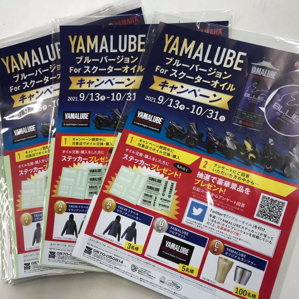 今週からYAMALUBEブルーバージョンオイルキャンペーンが開催されております!